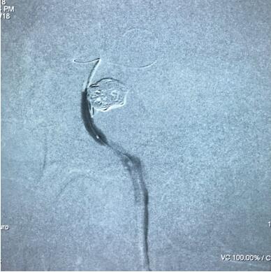 果然是还有侧漏!也许是微导管撑着支架的原因吧?但微导管可不能轻易撤出,一旦撤出便无法再进去的!